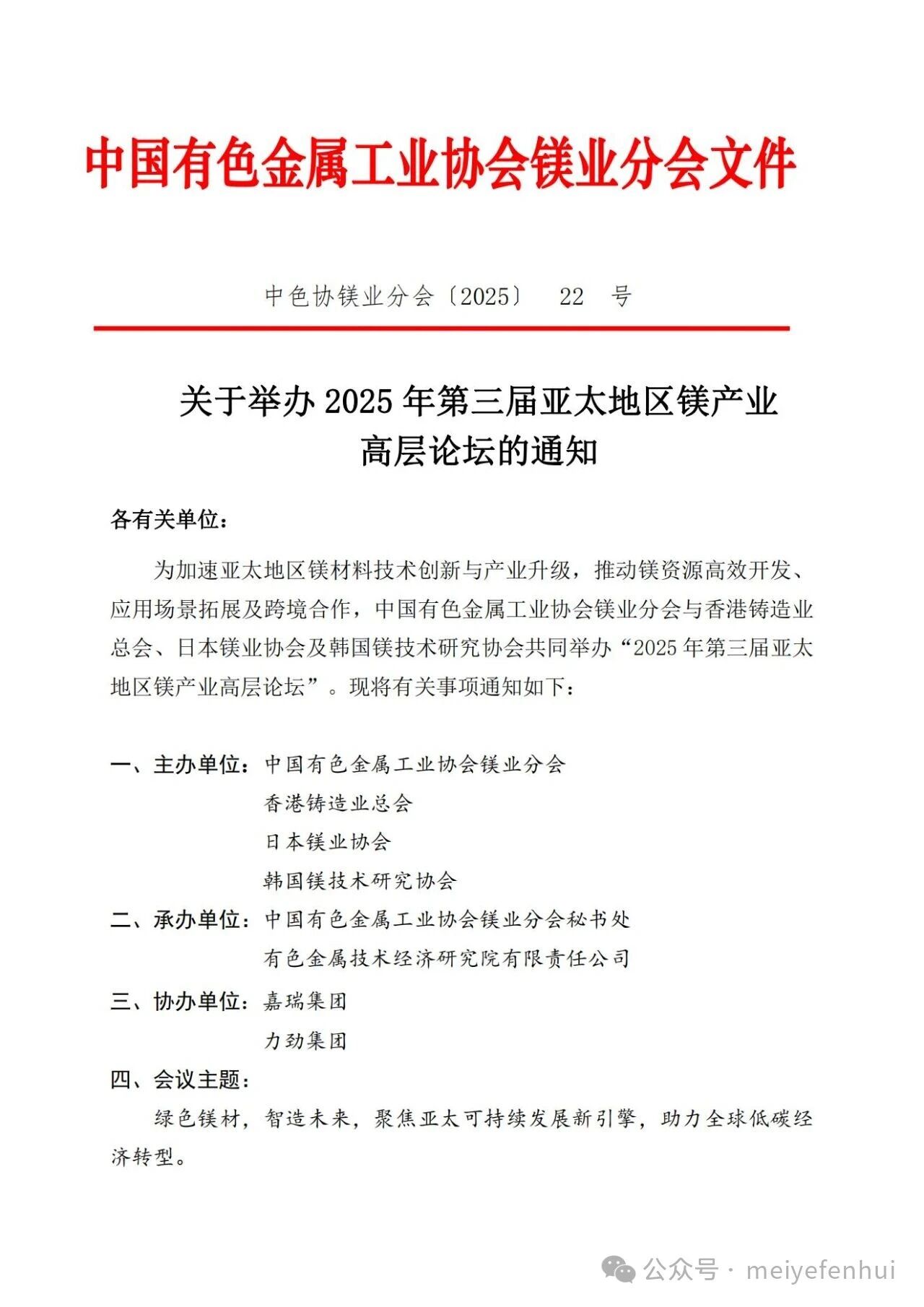 关于举办2025年第三届亚太地区镁产业高层论坛的通知